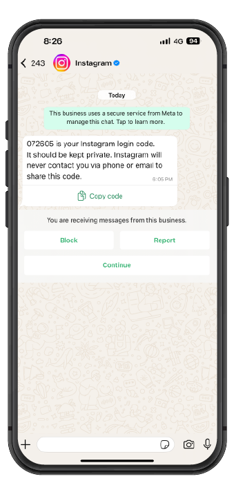 Locked out? WhatsApp OTPs speed up verification, so users regain access without delays.