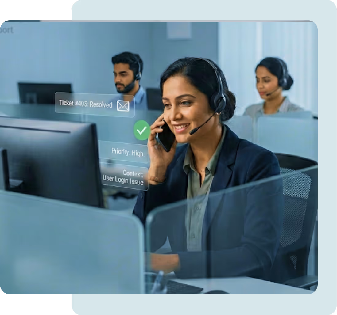 AI triage, routing, and contextual escalations reduce manual workloads at scale.