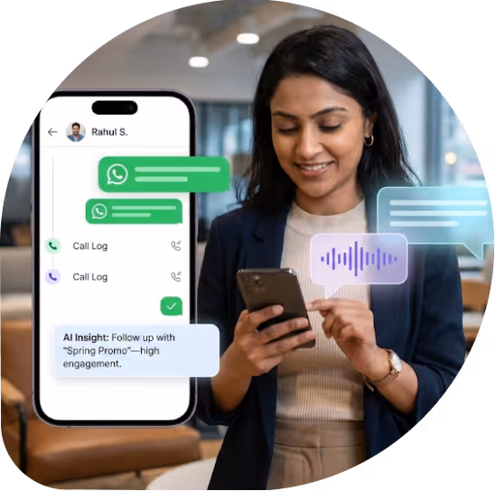 Outbound and inbound Calls sync with WhatsApp context and deal timelines.