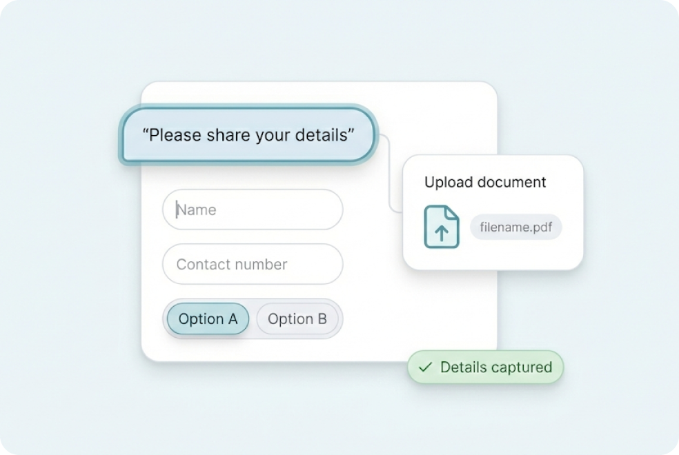 AI voicebots and chatbots that handle first response, qualification, and routing.