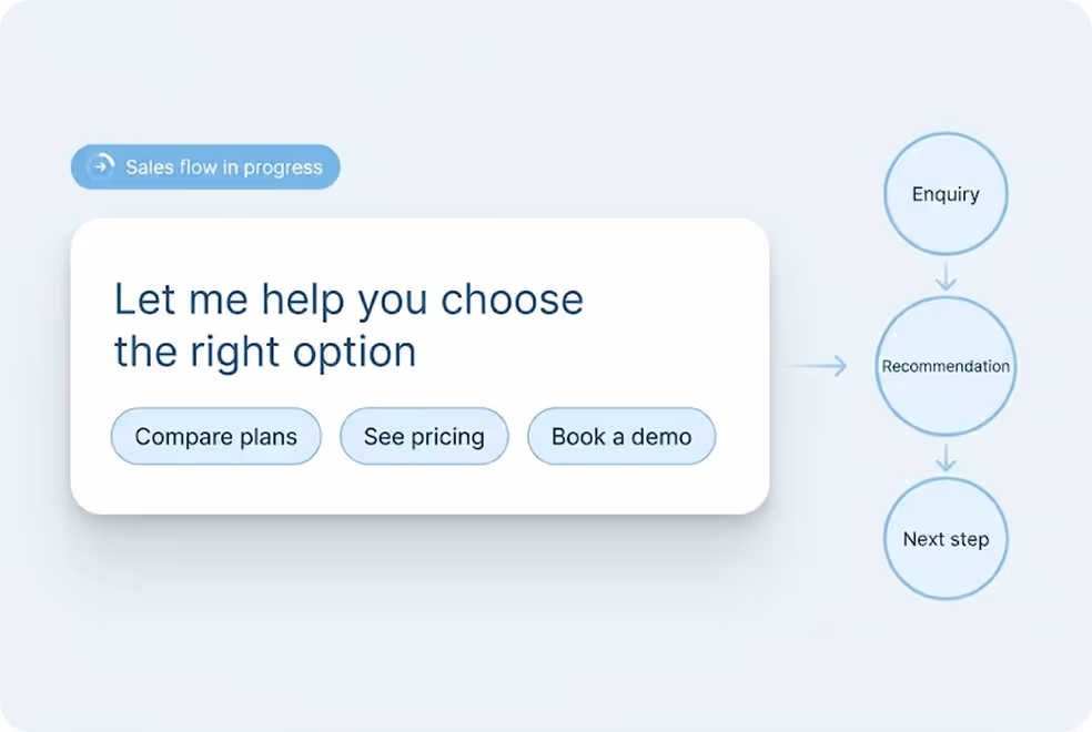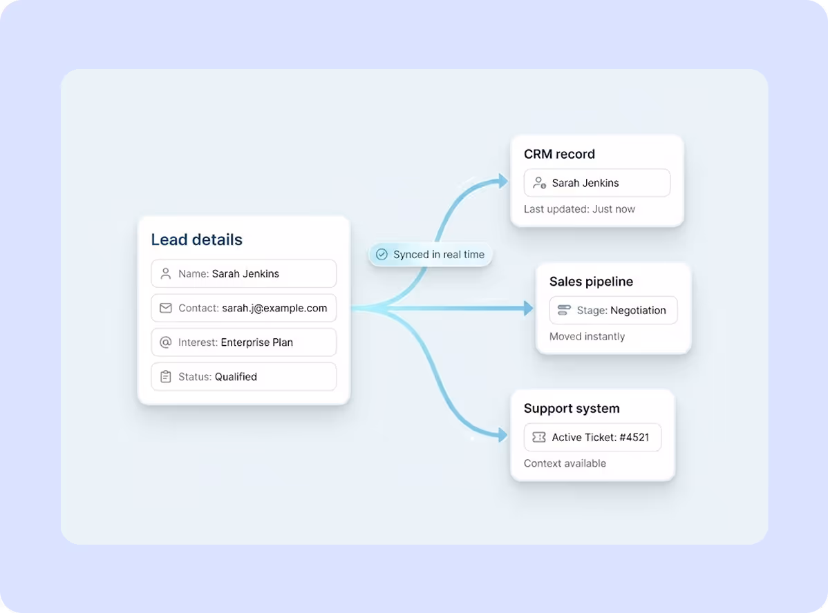 Sales and support teams step in with complete conversation context.