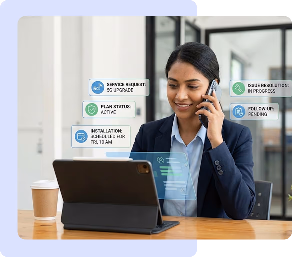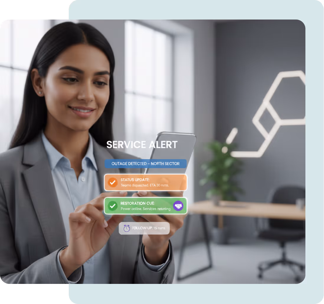 Cloud calling and IVR for inbound support, outage helplines, escalations, and follow-ups.