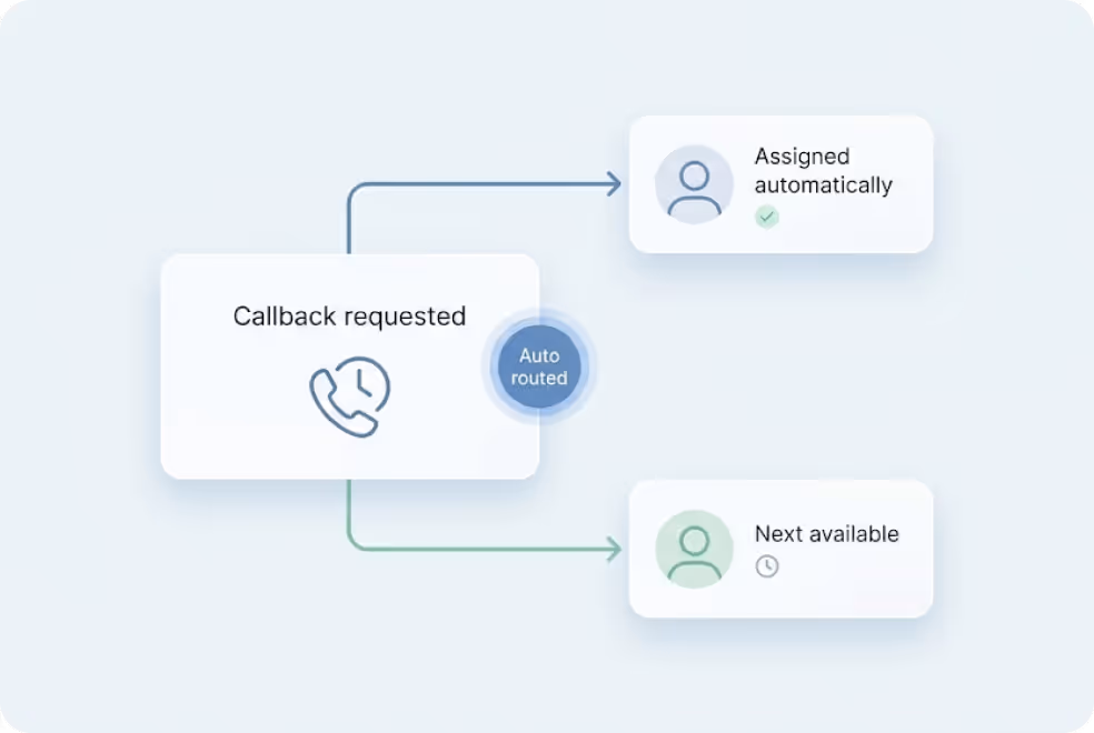AI voicebots and chatbots that handle first response, qualification, and routing.